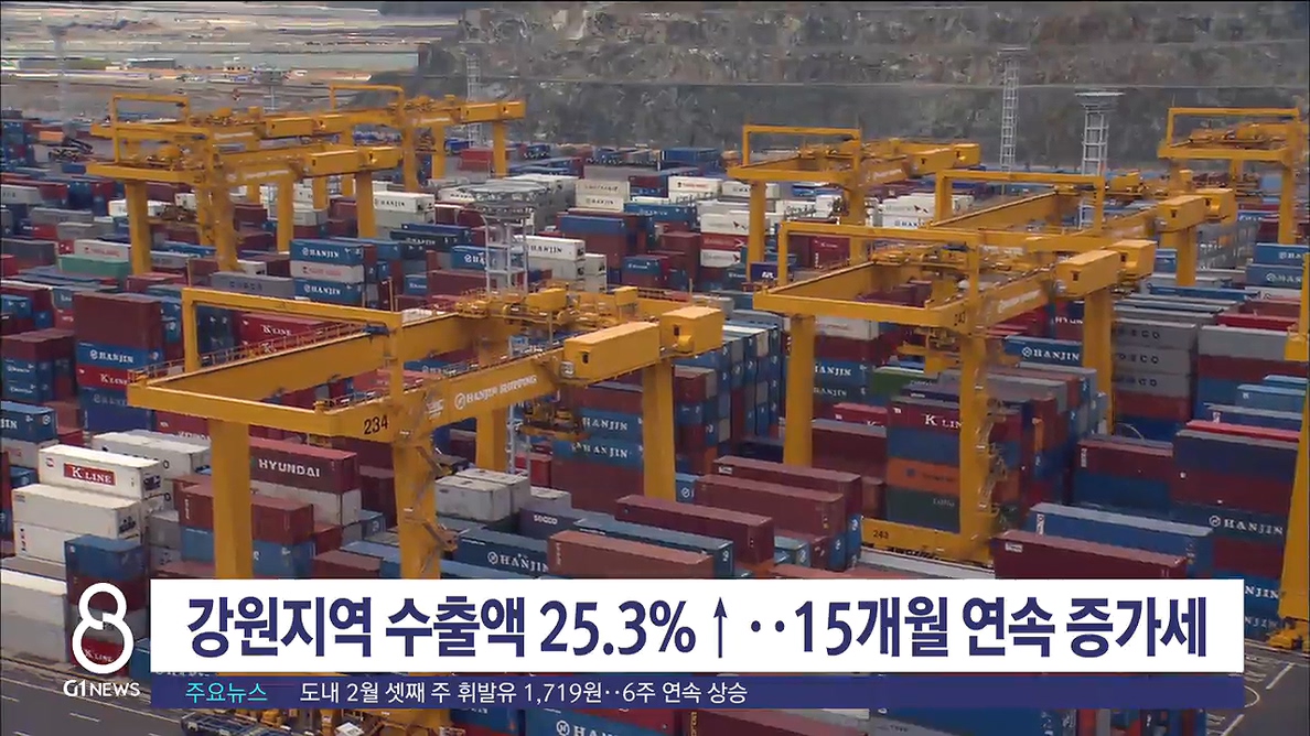 강원지역 수출액 25.3%↑‥15개월 연속 증가세