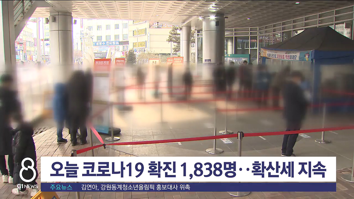 강원도에서는 오늘 모두 1,838명의 코로나19 신규 확진자가 나왔습니다.