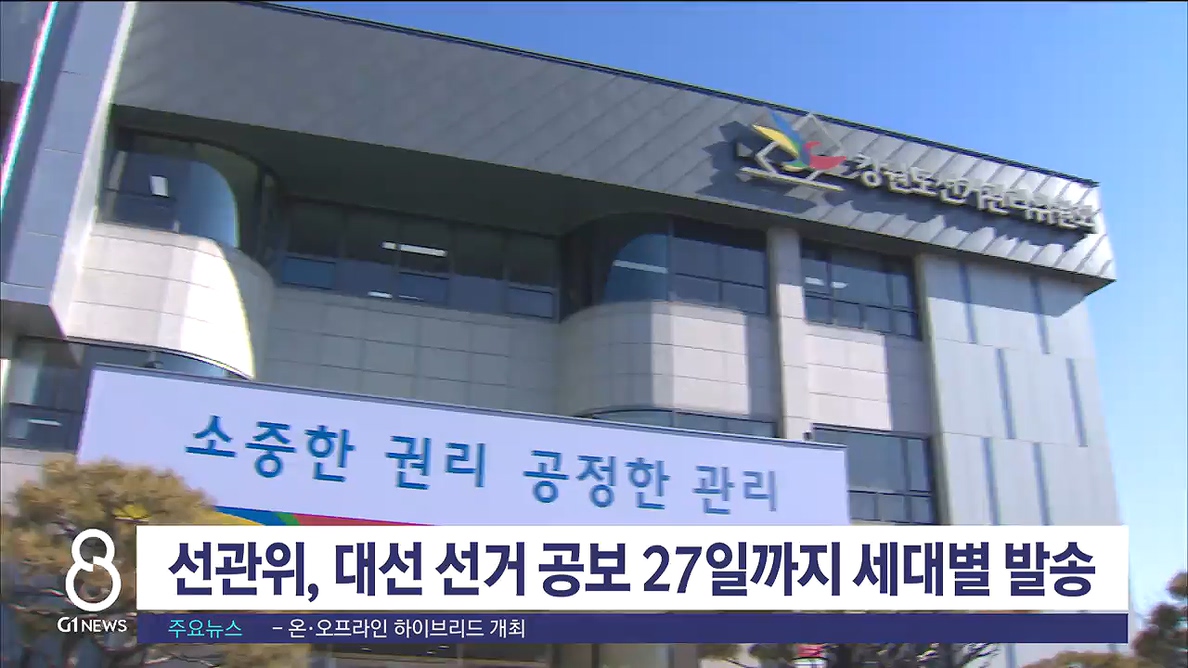 강원도선거관리위원회는 오는 27일까지 16페이지 이내의 책자형 선거 공보와 전단형 선거공보, 투표안내문을 각 세대별로 발송한다고 밝혔습니다.