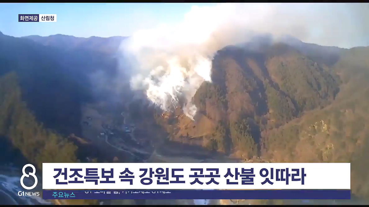 도 전역에 건조특보가 발효된 가운데, 오늘(24일) 강릉과 평창, 홍천에서 산불이 잇따라 발생했습니다.
