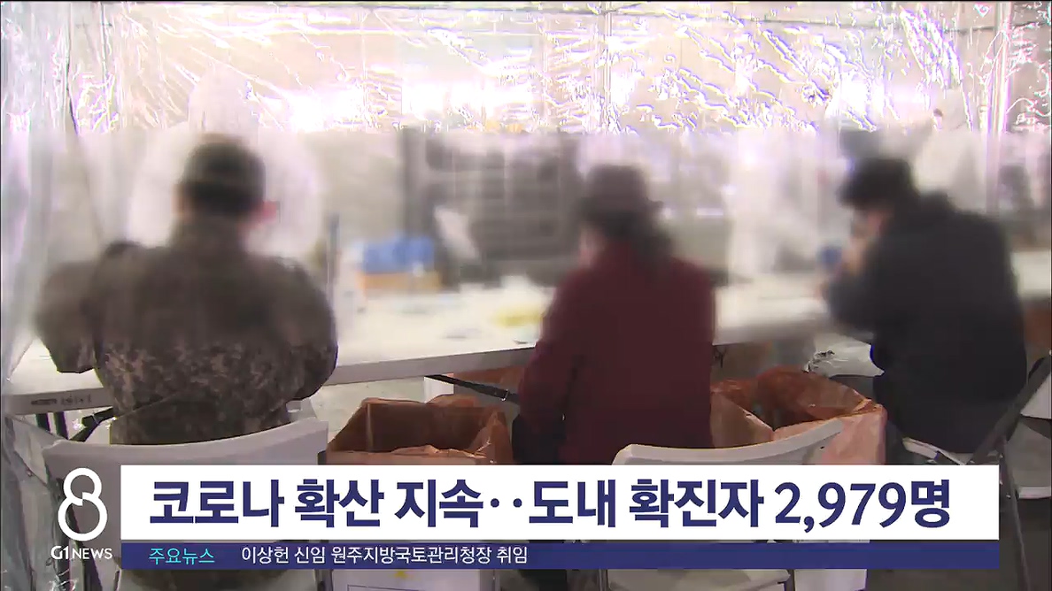 코로나 19 확산세가 꺾이지 않는 가운데, 오늘 강원도에서는 모든 시·군에 걸쳐 2,979명이 확진 판정을 받았습니다.