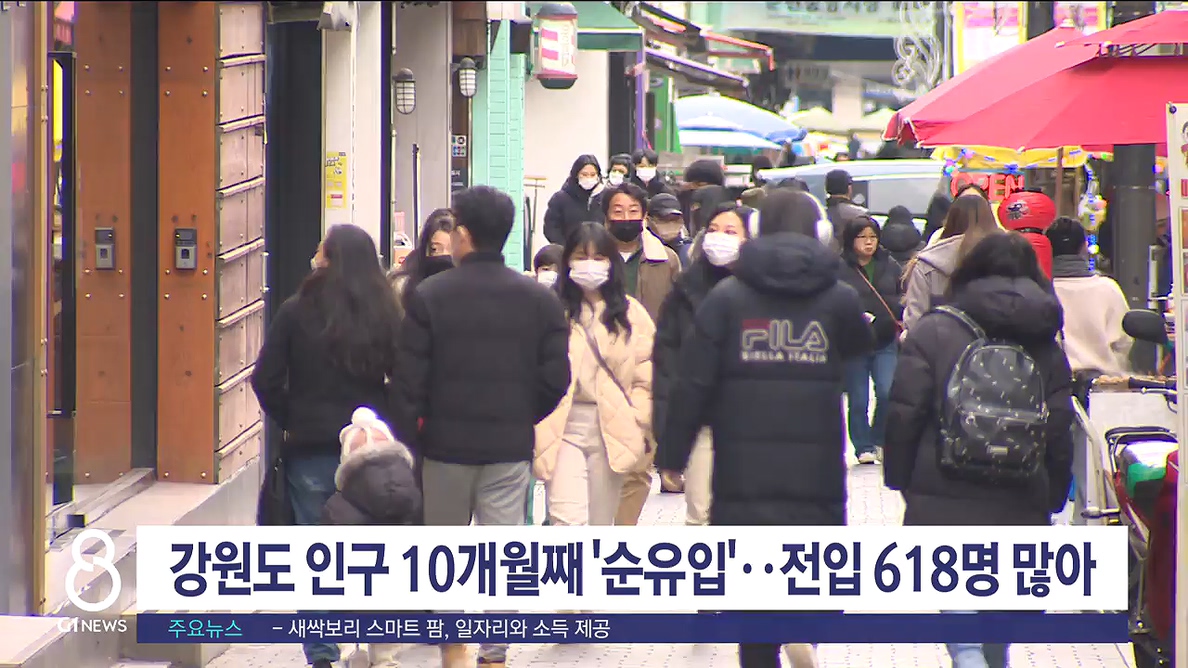 강원도의 인구 이동이 10개월째 유출되는 인구보다 유입되는 인구가 더 많은 것으로 나타났습니다.