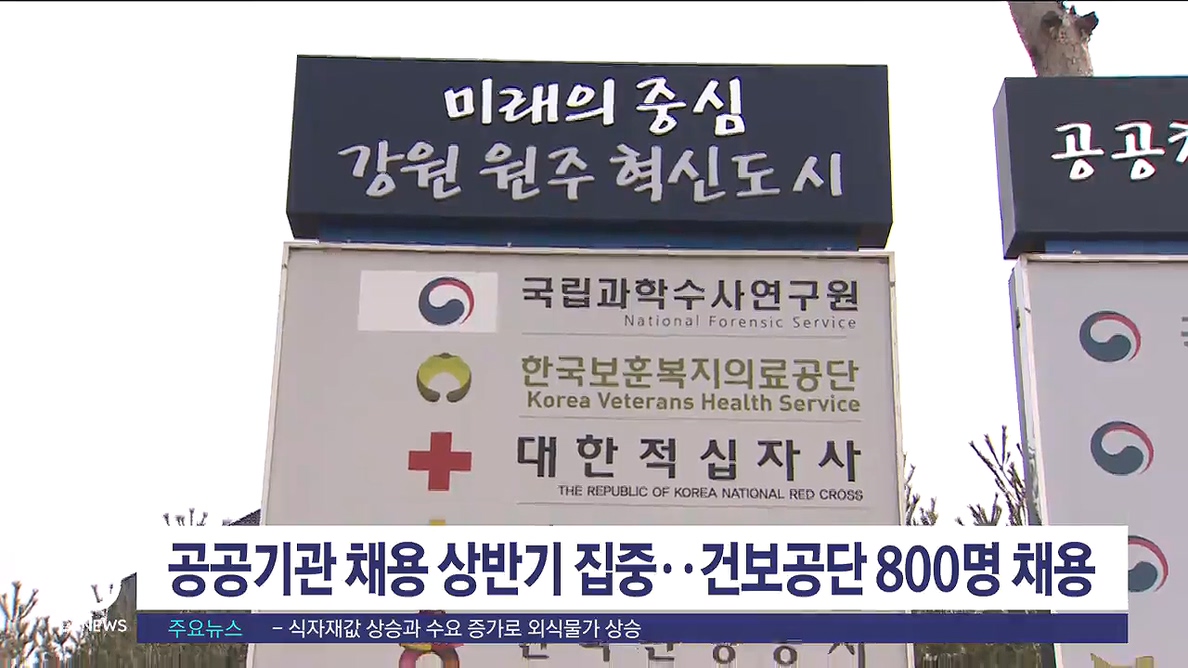 원주 혁신도시 내 공공기관인 국민건강보험공단과 한국보훈복지의료공단은 올해 각각 신입 직원 800명 이상을 채용할 예정입니다.