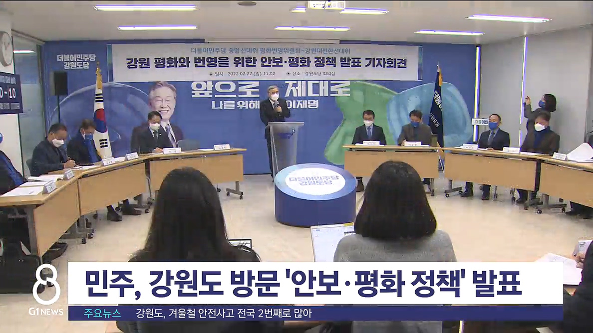 더불어민주당 선대위 평화번영위원회와 강원대전환선대위는 오늘(27일) 강원도당에서 기자회견을 열고, 이재명 후보의 안보·평화 정책을 발표했습니다.