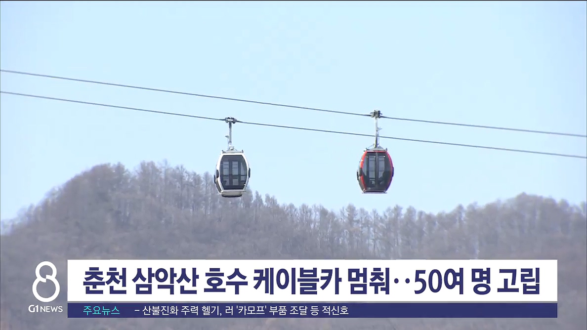 오늘 오후 1시 40분쯤 춘천 삼악산 호수 케이블카에서 운행 중이던 케이블카가 고장 나 관광객 수십 명이 고립되는 사고가 났습니다.