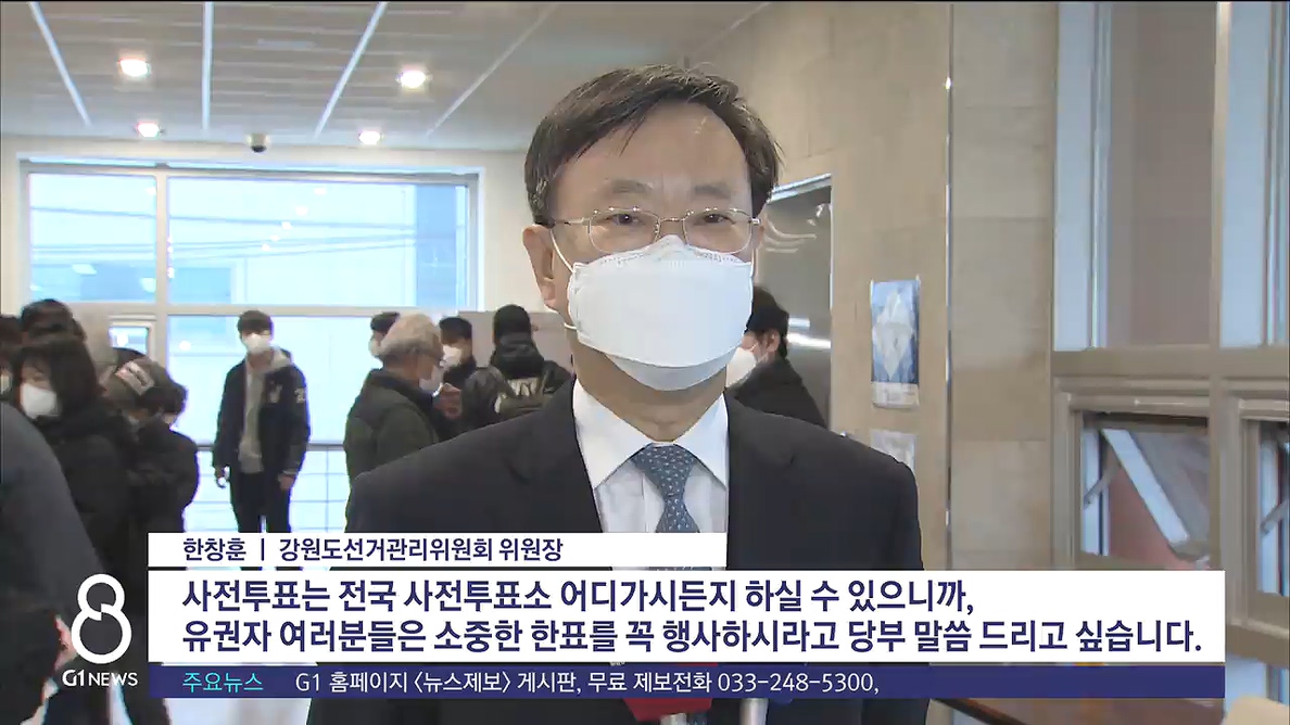 "사전투표는 전국 사전투표소 어디가시든지 하실 수 있으니까, 유권자 여러분들은 소중한 한표를 꼭 행사하시라고 당부 말씀 드리고 싶습니다."