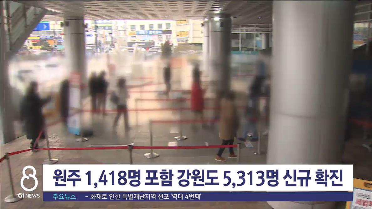 오늘 강원도 모든 시·군에서 코로나19 신규 확진자 5,313명이 나왔습니다.