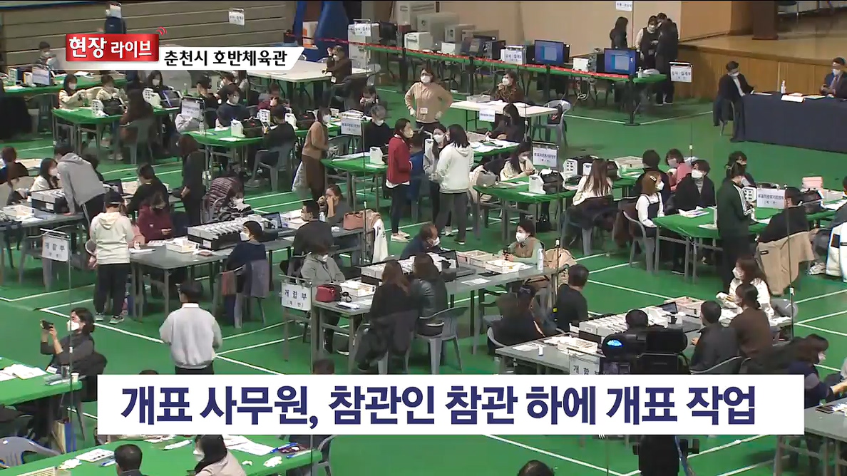 네, 저는 지금 춘천시 개표소인 호반체육관에 나와 있습니다.