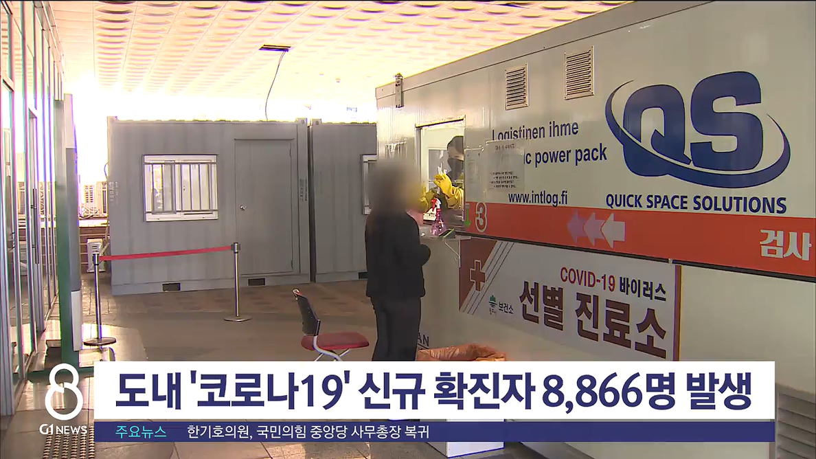 오늘 도내에서는 모두 8,866명의 '코로나19' 신규 확진자가 나왔습니다.