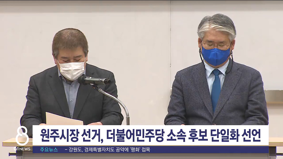 "원주의 새 시대를 위해 변화와 혁신의 뜻을 모으기로 했다"며 단일화를 공식 선언했습니다.