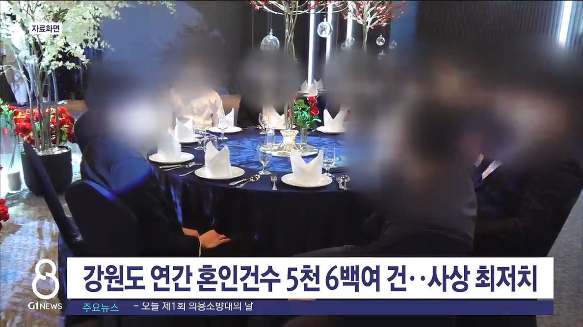 지난해 강원도 연간 혼인 건수가 5천 6백여 건으로, 관련 통계 작성이 시작된 이후 사상 최저치를 기록했습니다.
