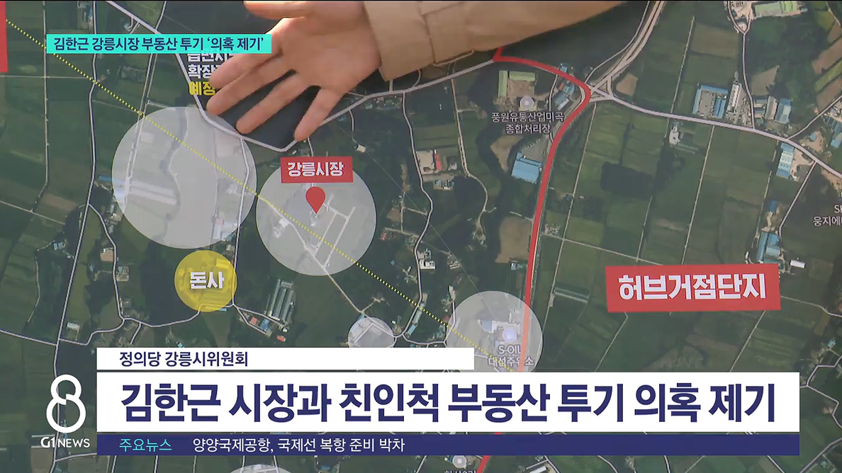 최근 강릉시가 허브거점단지 개발행위 제한지역을 일부 해제했는데, 시장 친인척 소유의 땅이 포함된 점에 대해서도 해명을 요구했습니다.