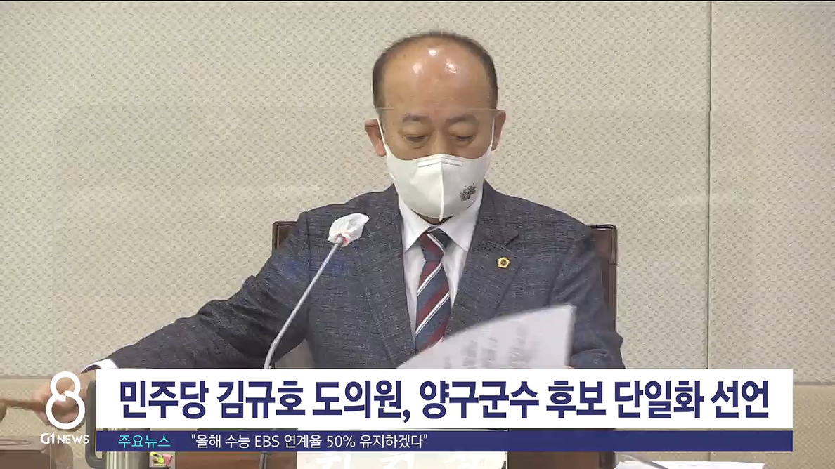 강원도의회 김규호 기획행정위원장은 양구군수 출마 의사를 접고, 조인묵 현 군수로의 후보 단일화와 지지를 결정했다고 밝혔습니다.