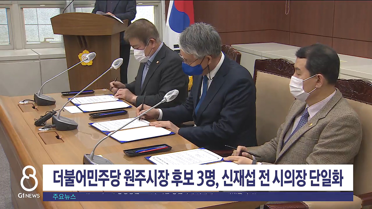 더불어민주당 원주시장 후보 3명이 단일화를 발표했습니다.