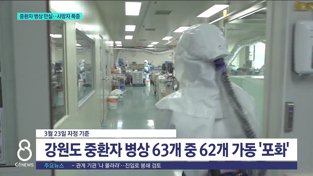 도내 중환자 병상은 63개 중 62개가 차 이미 포화 상태입니다.