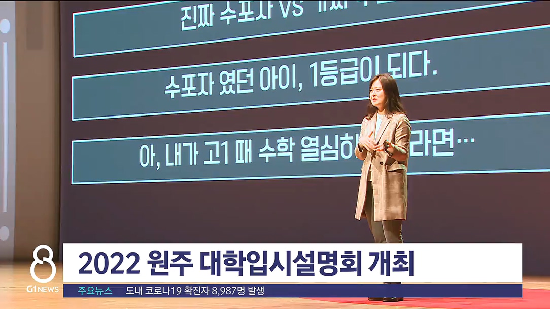 원주시가 주최하고 G1방송과 원주교육지원청이 주관하는 오늘 입시 설명회에선 수능을 앞둔 수험생의 과목별 학습법과 맞춤형 학습 설계 전략 등을 강의했습니다.