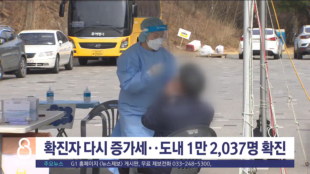 코로나19 확진자수가 다시 증가세를 보이는 가운데, 오늘 강원도에서는 만 2,037명의 신규확진자가 나왔습니다.