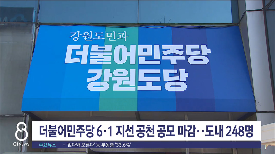 더불어민주당 강원도당 공직선거후보추천관리위원회가 6·1 지선 공천 공모 접수를 마감한 결과, 도내에서는 모두 248명이 접수한 것으로 나타났습니다.