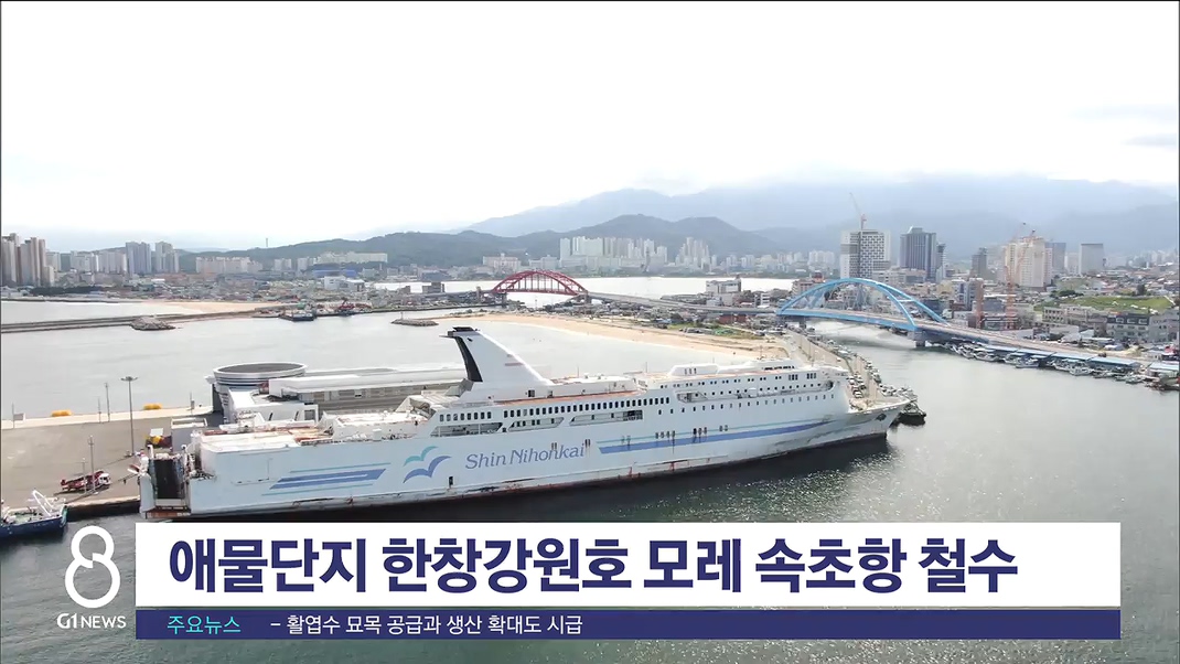 속초시는 한창강원호가 지난 2019년 9월 속초항에 입항했지만, 선박 수리비 부담과 코로나19에 따른 운영난으로 작년 10월 해양수산부에 정기여객면허를 반납한데 이어, 최근 인도에 배를 매각해 모레 철수할 예정이라고 밝혔습니다.