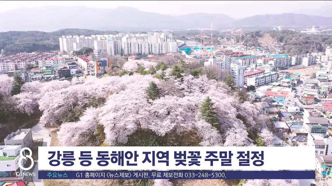 강릉을 비롯한 동해안 지역 벚꽃이 이번 주말 절정을 맞을 것으로 보입니다.
