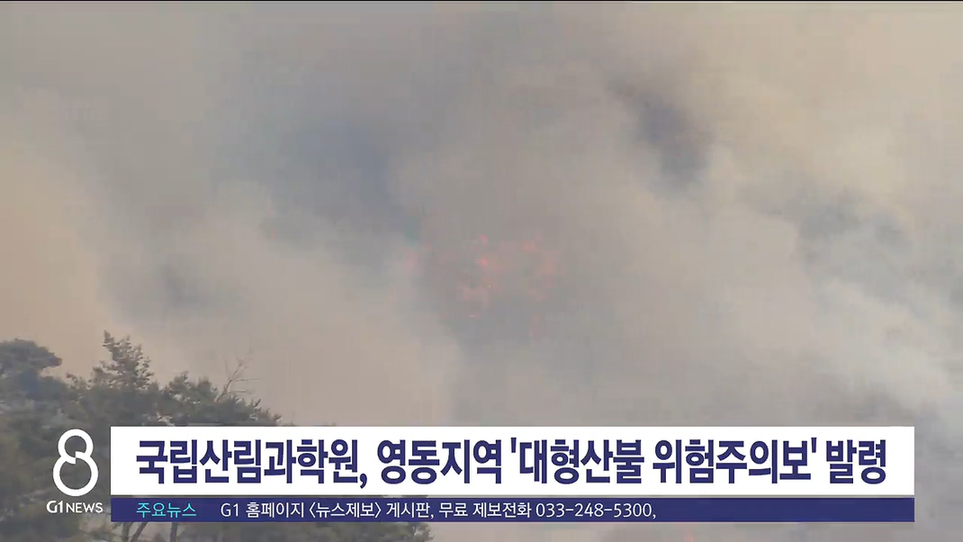 산림청 국립산림과학원 산불예측·분석센터는 오늘(8일)부터 사흘 동안 순간풍속 초속 25m 이상의 강한 바람이 불 것으로 예보돼 영동지역에 대형산불 위험주의보를 발령한다고 밝혔습니다.