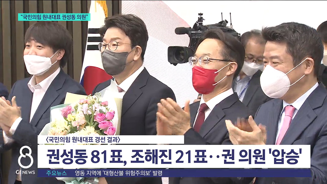 다음 달이면 집권여당이 되는 국민의힘 새 원내대표를 뽑는 선거에서 권성동 의원이 반 윤핵관 기치를 내건 조해진 의원을 여유있게 물리쳤습니다.