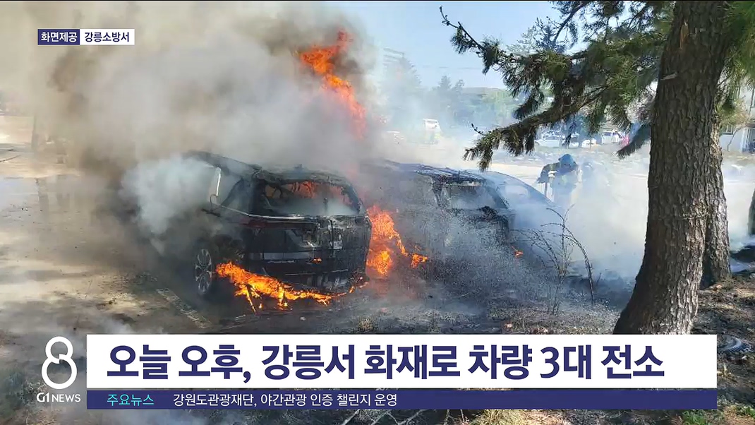 오늘(10일) 오후 1시 30분쯤 강릉시 초당동 한 주차장에서 불이 나 차량 3대가 불 탔습니다.