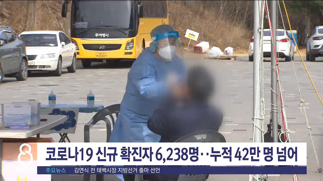 코로나19 신규확진자 6238명..누적 42만명 넘어