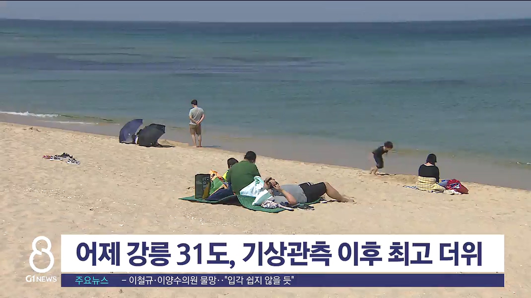 강릉시는 어제 낮 최고 기온이 31.3도를 기록해 1911년 이후 같은 기간 중 가장 더웠고, 동해 30.3도, 속초 29.8도 등 동해안 지역을 중심으로 30도 안팎의 여름 날씨를 보였습니다.
