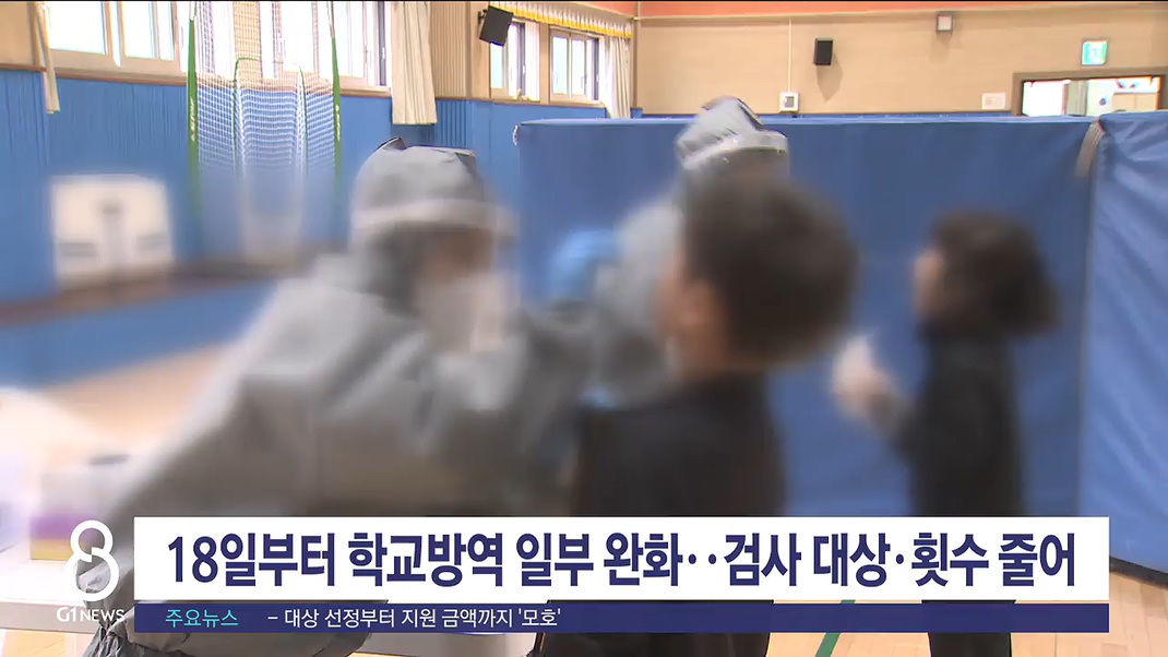 오는 18일부터 학교 방역이 일부 완화돼 학생들의 코로나19 검사 권고대상과 횟수가 줄어듭니다.