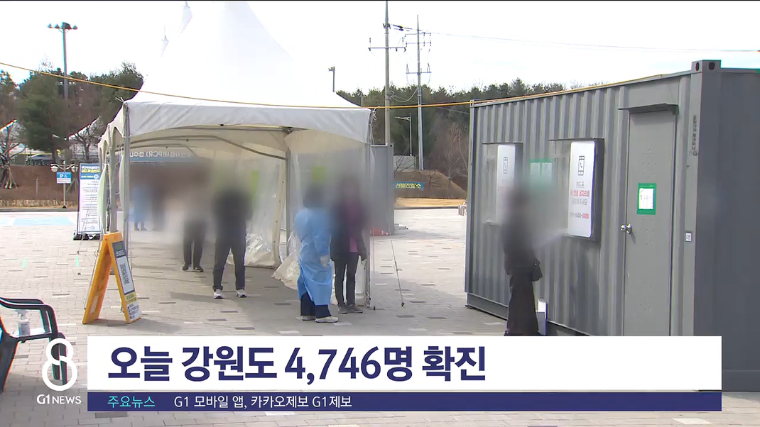 오늘 강원도 모든 시·군에 걸쳐 코로나19 신규 확진자가 4,746명 발생했습니다.