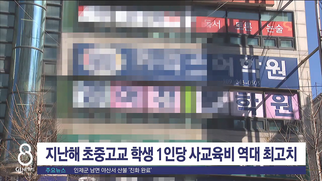 지난해 초중고교 학생 1명 당 사교육비가 통계 작성 이래 역대 최고치를 기록한 것으로 조사됐습니다.