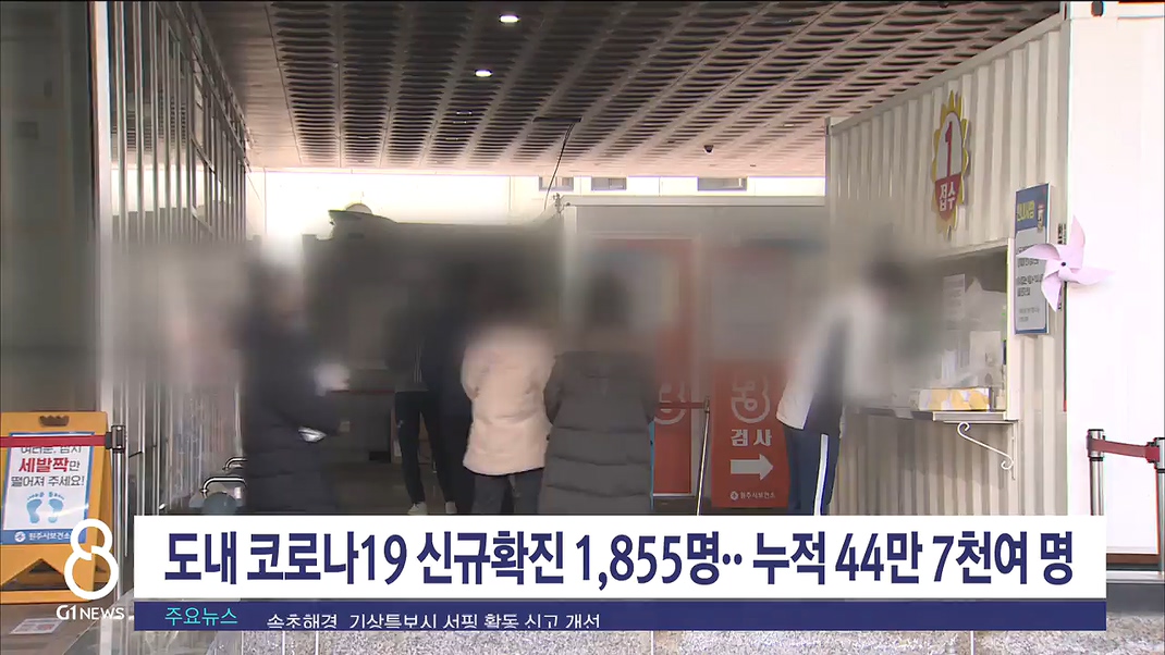 도내 코로나19 신규확진 1855명..누적 44만 7천여 명