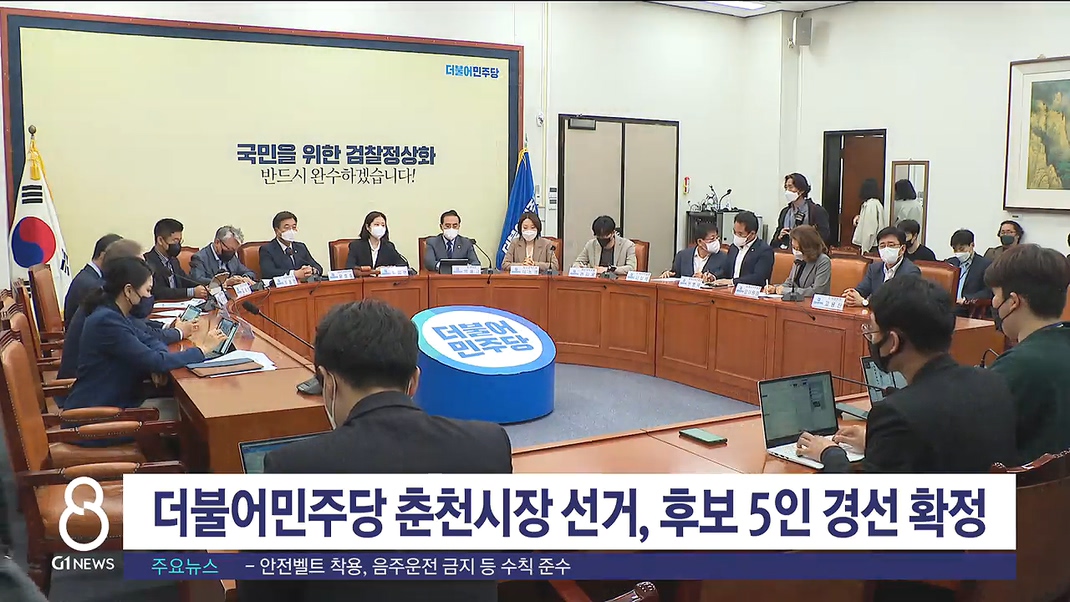 더불어민주당 비대위는 오늘 국회에서 비공개회의를 열고, 춘천시장 공천을 신청한 이재수·강청룡·유정배·육동한·허소영 등 예비후보 5명에 대해 경선을 확정했습니다.