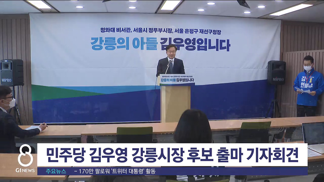 더불어민주당 김우영 강릉시장 후보가 강릉시청 브리핑룸에서 출마 기자회견을 열었습니다.