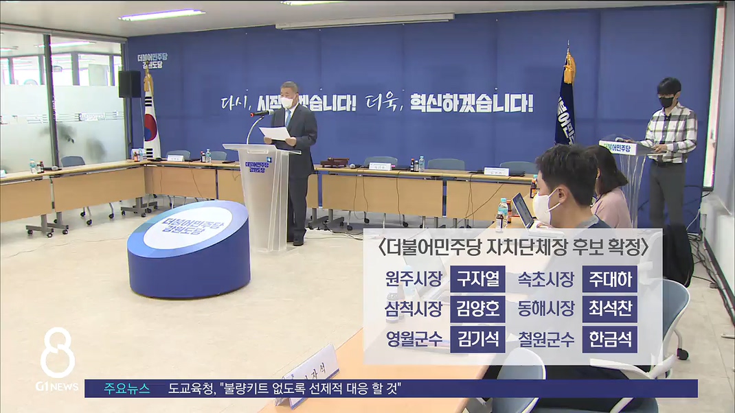 더불어민주당 강원도당이 원주와 속초 등 6개 지역에 대한 경선을 끝내고 후보를 공식 확정했습니다.