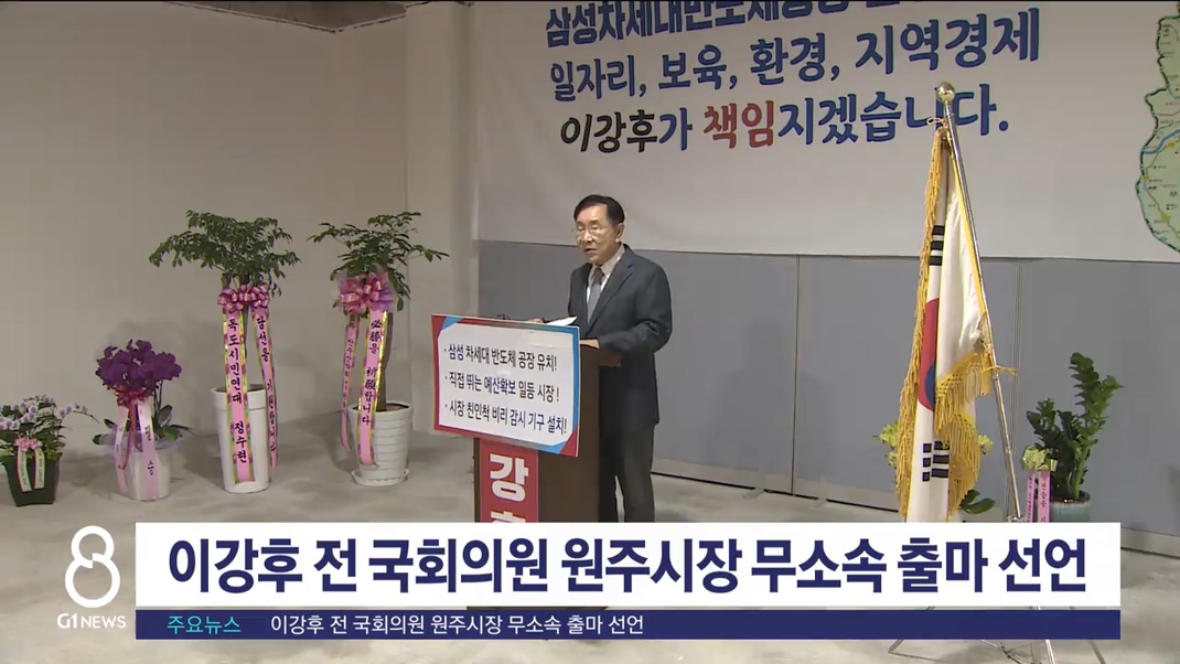 국민의힘 중앙당 공천관리위원회 공천에서 공천 배제된 이강후 원주시장 예비후보가 무소속 출마를 선언했습니다.