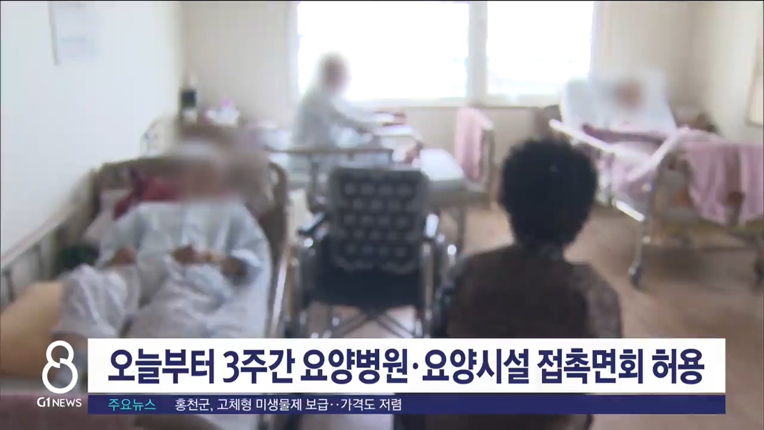 오늘(30일)부터 다음 달 22일까지 3주간 요양병원과 요양시설의 접촉 면회가 허용됩니다.