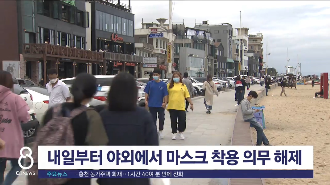 방역당국은 내일부터 실외 마스크 착용 의무를 해제하기로 했습니다.