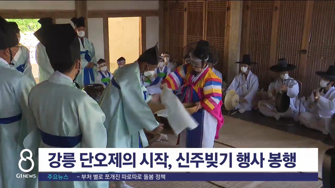 강릉 단오제의 시작을 알리는 신주미 봉정과 신주빚기 행사가 강릉 대도호부 관아와 칠사당에서 열렸습니다.