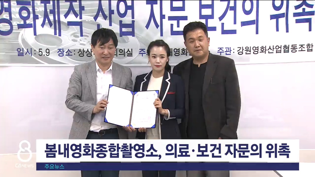봄내영화종합촬영소는 오늘(9일) 춘천상상마당에서 영화산업과 관련한 의료, 보건 자문의 위촉식을 열었습니다.