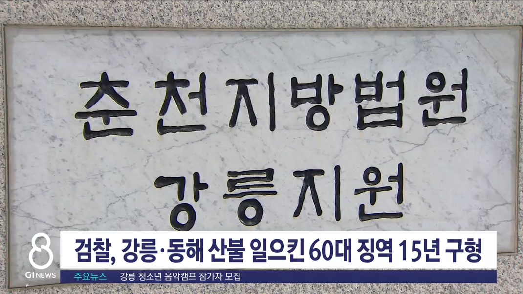 춘천지법 강릉지원 형사2부 심리로 열린 60대 A씨의 결심 공판에서 검찰은 "계획적이고 묻지마식 범행을 저질렀고, 대형산불이 예상되는 때 범행을 저지르는 등 죄질이 매우 불량하다"며 징역 15년을 선고해 달라고 재판부에 요청했습니다.