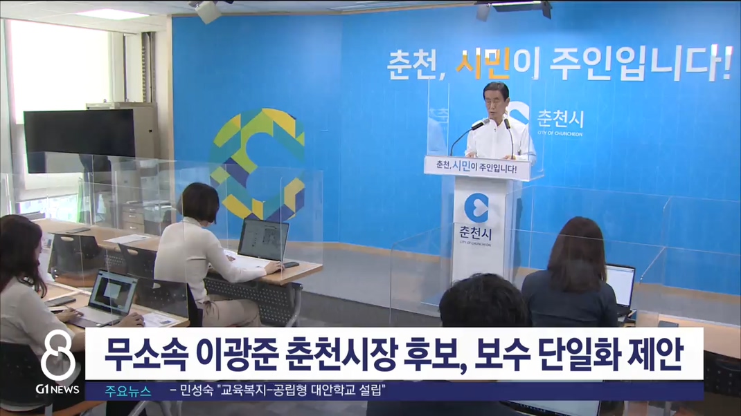 이광준 후보는 춘천시청에서 기자회견을 열고, "자신의 무소속 출마로 보수진영 표 분산에 대한 시민 우려가 크다"며 여론조사를 통해 보수진영 단일화를 추진할 것을 제안했습니다.
