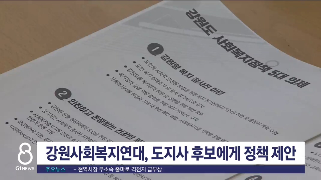 도내 16개 단체로 구성된 강원사회복지연대가 6월 지방선거 도지사 후보에게 사회복지 정책과제를 제안했습니다.