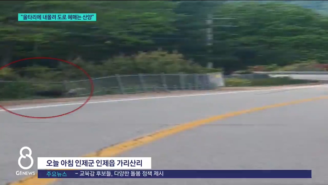 울타리를 넘지 못한 산양이 이처럼 도로를 활보하면, '로드킬' 위험도 커질 수 밖에 없습니다.