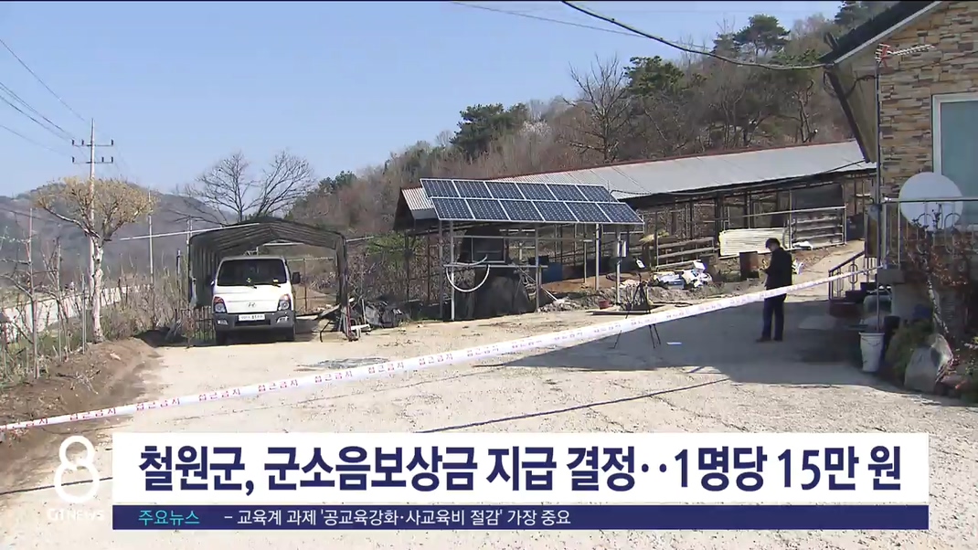 군사 훈련으로 소음 피해를 받는 철원군민에게 보상금이 지급됩니다.