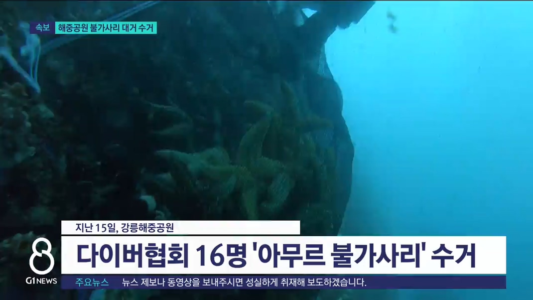 지난주 G1뉴스에서는 강릉해중공원에 아무르불가사리가 집단 서식하면서 바다생태계를 초토화시키고 있다는 보도 전해드렸는데요.