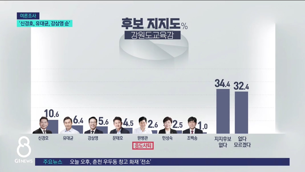 강원도교육감 후보 중에 누구를 가장 지지하냐고 물었습니다.