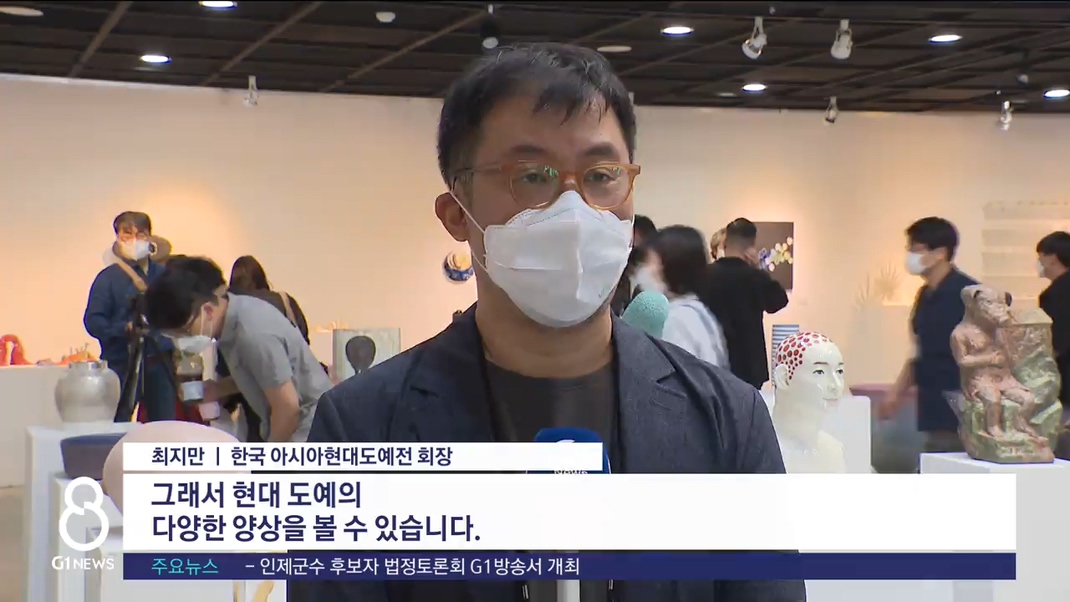 "특별 기획으로 해서 강릉 아트센터에서 개최하고 있습니다. 이 전시는 교수님들하고 대학원생들이 같이하는 전시거든요 그래서 현대 도예의 다양한 양상을 볼 수 있습니다."