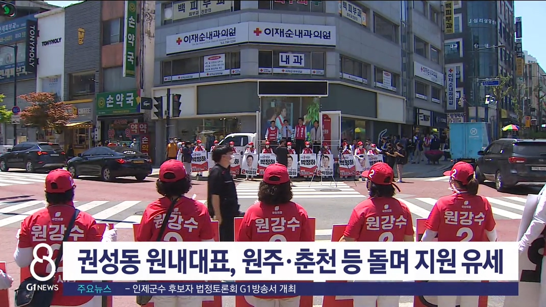 권 원내대표는 원주 중앙시장과 자유시장 일대를 돌며 원주 발전을 위해선 박정하 원주갑 국회의원 후보와 원강수 원주시장 후보가 당선돼야 한다며 힘을 모아달라고 호소했습니다.
